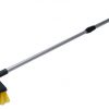 El cepillo ideal para la lavandería grande de autocaravana: ancho de cepillo 26 cm, varilla de aluminio continuamente ajustable 115 – 180 cm, conexión para manguera de agua (sistema de jardinería), válvula de bloqueo, manijas de aislamiento hechas de espuma negra.