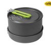 Gracias a las manijas plegables, el juego de olla se puede guardar mucho espacio.Ideal para paneles de camionetas con espacio limitado.Color de la olla: antracita, manejar color: lima.Con una bolsa de transporte para guardar.