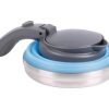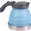 Hervidor de silicona. Plegable. Color: azul. Base de acero inoxidable apta para gas y placas de cocción. Dimensiones abierto: øpiso: 15,5cm, altura: 14cm. Dimensiones plegado (incl. asa): 21,5cm, altura 6cm, ø15,5cm. ATENCIÓN: ¡Siempre retire la caldera de la placa de cocción con protección térmica! El nuevo sistema estable permite abrir la tapa con sólo pulsar un botón.