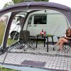 Alfombra de carpa ligera y suave con lámina térmica en la parte posterior. Con 2 felpudos impermeables en las entradas. También se puede utilizar en el exterior.