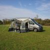 El toldo de autocaravana con nueva tecnología aérea, solo es necesaria una manguera aérea.Con la válvula externa.Las paredes laterales con puertas y ventanas con cortinas aseguran la máxima protección de la privacidad.Suelo solo como un “marco” debajo de las mangueras de aire para una estructura rápida.Color: gris, antracita, lima.