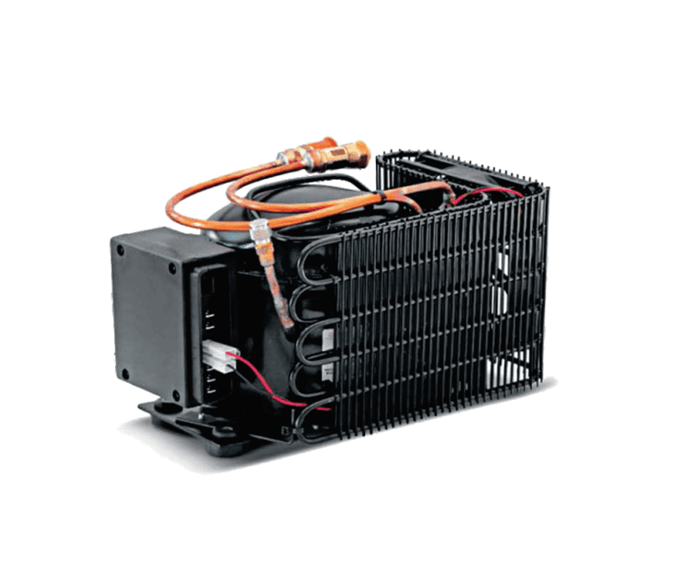Las unidades refrigerantes son utilizadas para realizar compartimientos frigoríficos hasta 300 litros y compartimientos freezer hasta 100 litros. Todas las unidades son alimentadas, de serie, a 12/24 Vdc y son suministradas en presión de nitrógeno. Bajo pedido pueden estar dotadas de uniones rápidas y de alimentación suplementaria a 100 / 240 Vac. En base al tipo de instalación refrigerante, la alimentación en corriente alternada puede ser suministrada mediante una centralita electrónica (12-24 / 100-240 Vac 50/60 Hz) aplicada en el compresor o mediante un alimentador externo de conmutación automática.
