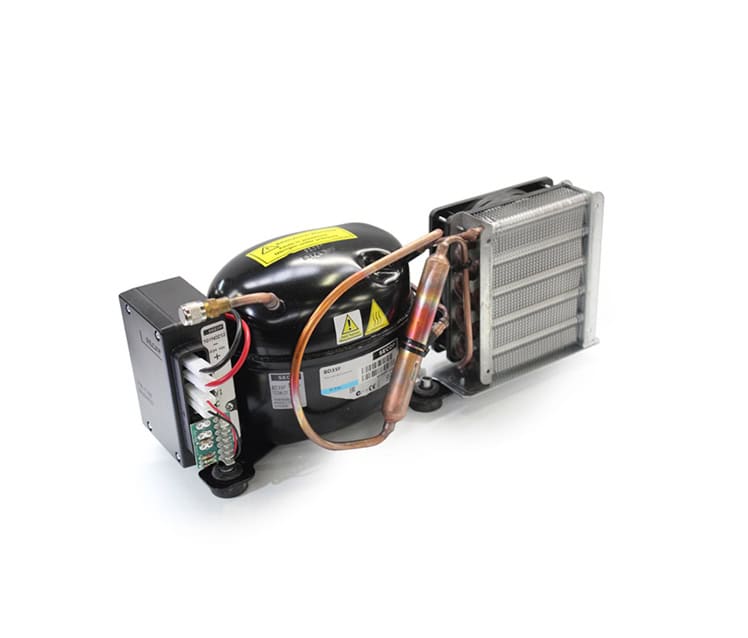 Las unidades refrigerantes son utilizadas para realizar compartimientos frigoríficos hasta 300 litros y compartimientos freezer hasta 100 litros. Todas las unidades son alimentadas, de serie, a 12/24 Vdc y son suministradas en presión de nitrógeno. Bajo pedido pueden estar dotadas de uniones rápidas y de alimentación suplementaria a 100 / 240 Vac. En base al tipo de instalación refrigerante, la alimentación en corriente alternada puede ser suministrada mediante una centralita electrónica (12-24 / 100-240 Vac 50/60 Hz) aplicada en el compresor o mediante un alimentador externo de conmutación automática.