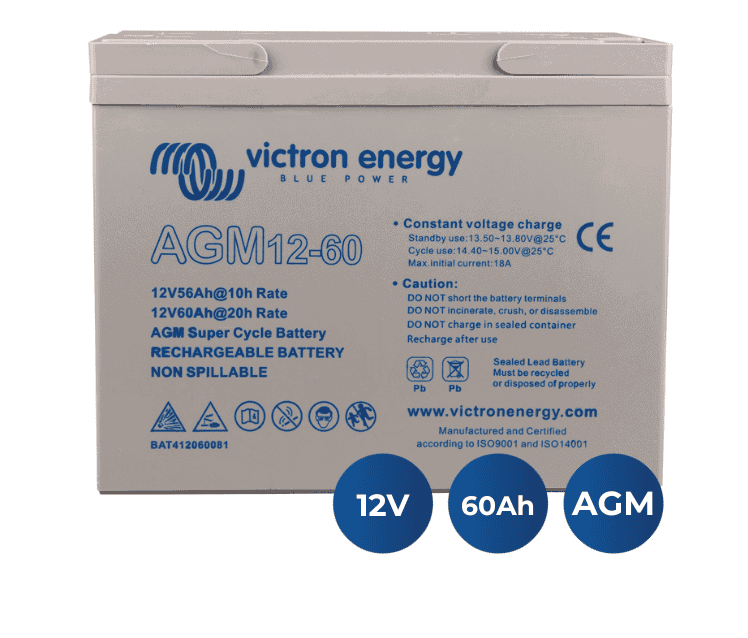 Victron BAT412550084 es una batería de cíclica de tecnología AGM, Sin mantenimiento para uso industrial y aplicaciones de flotación y tracción con una capacidad