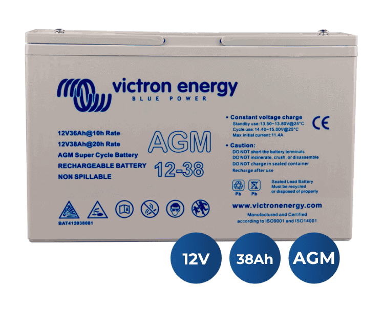 Una batería realmente innovadoraLas baterías AGM Super Cycle, como la batería Victron 12V/38Ah AGM Super Cycle Batt, son el resultado de recientes avances de la