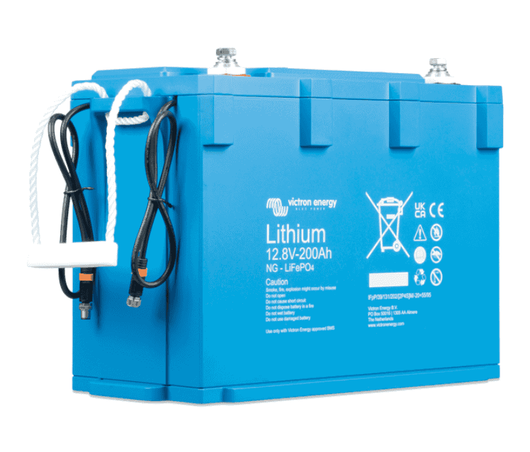 La bateria de litio LiFePO4 Victron 12,8V 200Ah NG es una bateria de fosfato de hierro y litio, lleva un shunt integrado y tiene una protección IP65. Puede cone