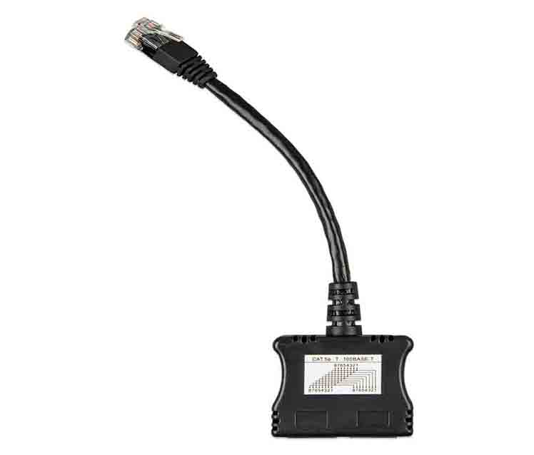 Divisor RJ45 – 1xRJ45 macho / cable de 15 cm / 2xRJ45 hembra Este divisor se utiliza para conectar el rango MultiPlus 500VA – 1600VA en configuraciones paralelas y trifásicas, o en otras instalaciones donde se requieren múltiples puertos VE.Bus.