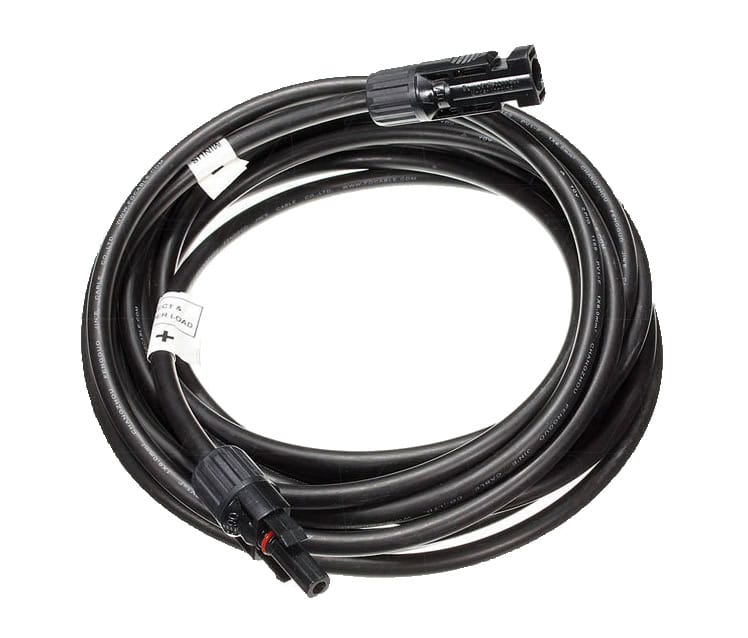 Este es un cable de 10 m de largo con un conector MC4 macho en un extremo y un conector MC4 hembra en el otro extremo. el tamaño del cable es de 6 mm cuadrados. Almacenamos esto para que pueda cortarlo por la mitad, conectar los extremos terminados a sus paneles solares y usar los extremos cortados para conectarlos al controlador de carga. A nadie le gusta perforar grandes agujeros en su bote o vehículo, por lo que solo vendemos los controladores de carga que usan extremos sin terminación.