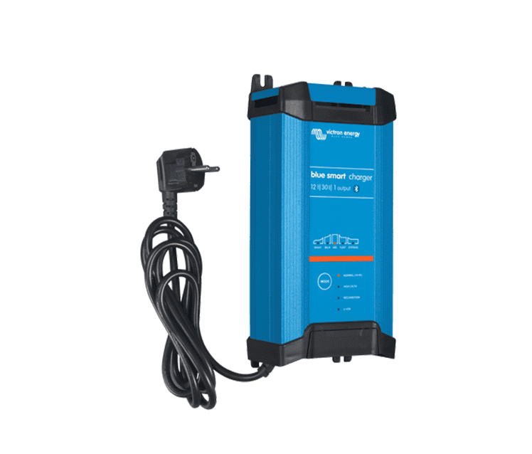 El nuevo cargador de baterías Victron Blue Smart IP22 con Bluetooth integrado. Con una eficiencia del 93% el cargador Blue Smart de Victron es una solución perfecta. Compatible también con baterías de litio LiFePO4.Características:Bluetooth SmartEl cargador de baterías Blue Smart IP22 es la solución inalámbrica para monitorizar la tensión y la corriente, cambiar los ajustes y actualizar el cargador cuando aparecen nuevas funciones.Alta eficienciaCon una eficiencia de hasta el 94%, estos cargadores generan hasta cuatro veces menos calor en comparación con la norma del sector. Y una vez completamente cargada la batería, el consumo se reduce a 0,5 vatios, entre cinco y diez veces menos que la norma de l sector.Algoritmo de carga adaptativo de 6 etapas: comprobación-carga inicial–absorción–reacondicionamiento-flotación-almacenamientoEl cargador Blue Smart dispone de gestión “adaptativa” de la batería controlada por microprocesador. Su función “adaptativa” optimizará automáticamente el proceso de carga en base al uso que se le dé a la batería.Modo de almacenamiento: menor envejecimiento y necesidad de mantenimiento cuando la batería no se esté usandoEl modo de almacenamiento se activa cuando la batería no ha sufrido ninguna descarga en 24 horas. En el modo de almacenamiento, la tensión de flotación se reduce a 2,2V/celda (13,2 V para baterías de 12 V) para reducir el gaseado y la corrosión de las placas positivas. Una vez a la semana, se vuelve a subir la tensión a nivel de absorción para “igualar” la batería. Esta función evita la estratificación del electrolito y la sulfatación, las causas principales de los fallos en las baterías.También carga baterías Li-Ion (LiFePO₄)Las baterías LiFePO₄ se cargan con un sencillo algoritmo de carga inicial –absorción – flotación.Ajuste NIGHT (noche) y LOW (bajo)Cuando los modos NIGHT o LOW están activos, la corriente de salida se reduce a un máximo del 50% de la salida nominal y el cargador será totalmente silencioso. El modo NIGHT finaliza automáticamente pasadas 8 horas. El modo LOW puede finalizarse de forma manual.Protección contra el sobrecalentamientoLa corriente de salida se irá reduciendo a medida que la temperatura aumenta hasta los 50ºC, pero el cargador Blue Smart no fallará.Once LED indicadores de estadoAlgoritmo de carga: TEST (comprobación)/ BULK (carga inicial)/ ABSORPTION (absorción)/ RECONDITION (reacondicionamiento)/ FLOAT (flotación)/ STORAGE (almacenamiento)/ READY (listo)Botón MODE para ajustar: NORMAL (14,4 V) / HIGH (14,7 V) / RECONDITION / LI-ION