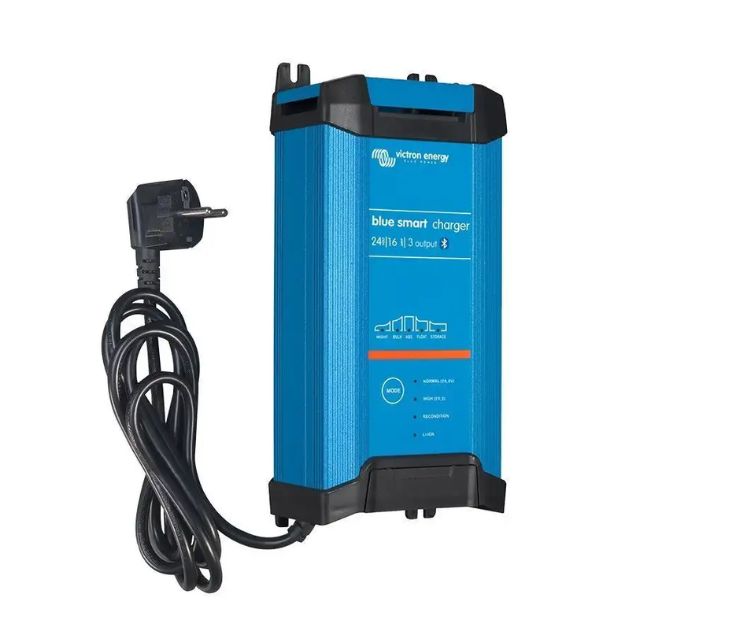 Nuevo cargador de baterías Victron Blue Smart IP22 24V 16 A con Bluetooth integrado y 3 salidas. Comprueba el estado de tu batería de forma remota desde un Smar