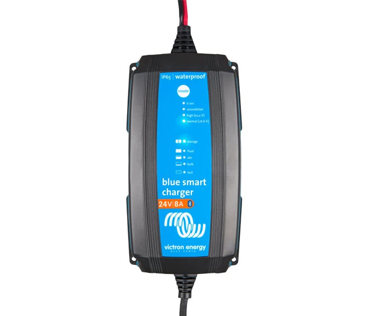 El Blue Smart IP65 Charger es el nuevo cargador de baterías profesional con bluetooth incorporado. El cargador Blue Smart IP65 puede utilizarse en dispositivos de su taller y en vehículos de motor, como coches (clásicos), motos, barcos y autocaravanas.Nuevo: IP65 12/5 sustituido por un modelo equivalente más pequeño: IP65s 12/5Modelos: 12V 4/5/7/10/15/25A, 24V 5/8/13ACaracterísticas:Resistente al agua, al polvo y a los productos químicosAlgoritmo de carga inteligente de siete pasosRecuperación de baterías “muertas” totalmente descargadasFunción de alimentación automáticaRendimiento en frío intenso: hasta -30°COtras funciones que mejoran la vida útil de las bateríasModo de baja potencia para cargar baterías más pequeñasModo de batería de iones de litioInstalación y configuración, lectura del voltaje y la corriente por Bluetooth SmartCargador de baterías “verde” de ultra alta eficienciaCon una eficiencia de hasta el 95%, estos cargadores generan hasta cuatro veces menos calor en comparación con el estándar del sector. Y una vez que la batería está completamente cargada, el consumo de energía se reduce a 0,5 vatios, unas cinco o diez veces mejor que el estándar del sector.Duradera, segura y silenciosa- Bajo estrés térmico en los componentes electrónicos.- Protección contra la entrada de polvo, agua y productos químicos.- Protección contra el sobrecalentamiento: la corriente de salida se reducirá a medida que aumente la temperatura hasta los 60°C, pero el cargador no fallará.- Los cargadores son totalmente silenciosos: no hay ventilador de refrigeración ni otras piezas móviles.ReacondicionamientoUna batería de plomo-ácido que no se ha cargado lo suficiente o que se ha dejado descargada durante días o semanas se deteriorará debido a la sulfatación. Si se detecta a tiempo, la sulfatación puede revertirse parcialmente cargando la batería con una corriente baja hasta un voltaje más alto.Función de recuperación para baterías totalmente descargadasLa mayoría de los cargadores con protección de polaridad inversa no reconocen, y por tanto no recargan, una batería que se ha descargado a cero o casi cero voltios. Sin embargo, el cargador Blue Smart IP65 intentará recargar una batería totalmente descargada con una corriente baja y reanudará la carga normal una vez que se haya desarrollado una tensión suficiente en los terminales de la batería.La aplicación VictronConnectPermite instalar, leer y su cargador Blue Smart IP65 a través de su smartphone.Puede visualizar el estado de su cargador y de la batería e incluso controlar las funciones de su cargador mediante la aplicación VictronConnect. En su pantalla la lectura de la tensión y la corriente está disponible por defecto. Descargue su aplicación para iOS y Android aquí en https://www.victronenergy.com/live/victronconnect:startModo de almacenamiento: menos corrosión de las placas positivasIncluso la tensión de carga de flotación más baja que sigue al periodo de absorción provocará la corrosión de la red. Por ello, es imprescindible reducir aún más la tensión de carga cuando la batería permanece conectada al cargador durante más de 48 horas.Carga con compensación de temperaturaLa tensión de carga óptima de una batería de plomo-ácido varía de forma inversa a la temperatura. El cargador Blue Smart IP65 mide la temperatura ambiente durante la fase de prueba y compensa la temperatura durante el proceso de carga. La temperatura se vuelve a medir cuando el cargador está en modo de baja corriente durante la flotación o el almacenamiento. Por lo tanto, no se necesitan ajustes especiales para un entorno frío o caliente.Modo de batería de iones de litioEl cargador Blue Smart IP65 utiliza un algoritmo de carga específico para las baterías de iones de litio (LiFePO₄), con restablecimiento automático de la protección de iones de litio bajo tensión.
