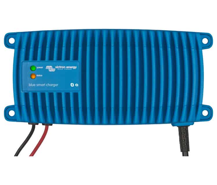 Nuevo cargador de baterías hidrófugo Victron IP67 con Bletooth lo que permite su configuración y el control de las baterías desde el Smartphone, tableta o PC. El modelo de 12V 7A es ideal para la recarga de baterías de coches clásicos, automóviles modernos, caravanas y autocaravanas.El cargador de baterías hidrófugo Blue Smart IP67 es el nuevo cargador profesional con Bluetooth integrado. El cargador hidrófugo Blue Smart IP67 puede usarse en dispositivos tanto en su taller como en vehículos a motor, como en coches (clásicos), motocicletas, barcos y autocaravanas.Este cargador tiene un algoritmo de carga en 7 etapas que carga la batería de forma inteligente proporcionándole la potencia necesaria, manteniendo su buen estado, garantizando un mejor rendimiento y una mayor vida útil.Los cargadores de baterías Victron, intentarán recargar una batería profundamente descargada alimentándola a la fuerza a baja corriente. Tan pronto como haya suficiente tensión en los terminales de la batería volverá a cargarla normalmente.Con el Bluetooth integrado en el cargador se podrá controlar el estado de la batería de forma remota mediante un Smartphone, una tableta o un ordenador portátil. A través de la app gratuita de Victron Connect se pueden todos los parámetros del cargador.A prueba de golpes, incendios y totalmente impermeable, el nuevo cargador Victron IP67 con su carcasa de aluminio fundido y sus componentes eléctricos moldeados en resina permite su uso en condiciones extremas.La mayor eficiencia jamás lograda!Victron establece un nuevo estándar en el sector: con una eficacia del 92% o superior, estos cargadores generan tres o cuatro veces menos calor. Y una vez completamente cargada la batería, el consumo se reduce a menos de un vatio, entre cinco y diez veces menos que la norma del sector.Algoritmo de carga variable de 4 etapas: inicial–absorción–flotación-almacenamientoEl cargador Blue Power dispone de gestión “variable” de la batería controlada por microprocesador. Su función “variable” optimizará automáticamente el proceso de carga en base al uso que se le dé a la batería.Menor envejecimiento y necesidad de mantenimiento cuando la batería no está en uso: el modo “Storage” (almacenamiento)El modo de almacenamiento se activa cuando la batería no ha sufrido ninguna descarga en 24 horas. En el modo de almacenamiento, la tensión de flotación se reduce a 2,2 V/celda (13,2 V para baterías de 12 V) para reducir el gaseado y la corrosión de las placas positivas. Una vez a la semana, se vuelve a subir la tensión a nivel de absorción para “igualar” la batería.Esta función evita la estratificación del electrolito y la sulfatación, las causas principales de los fallos en las baterías. También carga baterías de litio LiFePO4Las baterías de litio LiFePO4 se cargan con un sencillo algoritmo de carga inicial-absorción-flotación.Protección contra el sobrecalentamientoPuede usarse en un entorno caluroso, como una sala de máquinas. La corriente de salida se irá reduciendo a medida que la temperatura aumenta hasta los 60ºC, pero el cargador no fallará.Dos LED indicadores del estadoLED amarillo: carga inicial (parpadeo rápido), absorción (parpadeo lento), flotación (fijo) ), almacenamiento (apagado)LED verde: activado