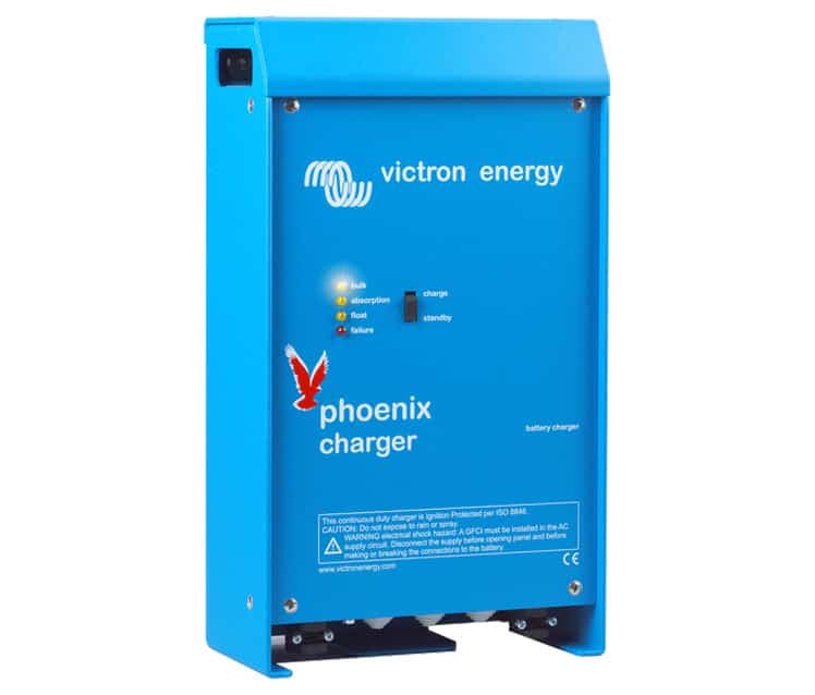 Cargador de Baterías Phoenix 12/50 2+1 120-240VEl Cargador de Baterías Phoenix 12/50 2+1 120-240V de Victron Energy dispone de un sistema de gestión de baterías personalizable. Está controlado por un microprocesador que puede se para distintos tipos de batería. Sus funciones adaptables optimizará automáticamente el proceso en base al uso de las baterías. Sistema de carga variable con 4 etapas: bulk – absorption – float – storageLa cantidad de carga adecuada: tiempo de absorción variableCuando la descarga es poca la fase de carga de absorción se acorta para así evitar una sobrecarga de la batería. Después de una descarga profunda, el tiempo de carga de absorción aumenta automáticamente para garantizar que la batería se recargue completamente.Prevención de daños provocados por un exceso de gaseado: modo BatterySafe Si, para cargar una batería rápidamente, se ha elegido una combinación de alta corriente de carga con una tensión de absorción alta, el cargador Phoenix evitará que se produzcan daños por exceso de gaseado, limitando automáticamente el ritmo de incremento de tensión una vez se haya alcanzado la tensión de gaseado Menor envejecimiento y mantenimiento cuando la batería no está en uso: modo StorageEl modo de almacenamiento se activa cuando la batería no ha sufrido ninguna descarga en 24 horas. En el modo de almacenamiento, la tensión de flotación se reduce a 2,2 V/celda (13,2 V para baterías de 12 V) para reducir el gaseado y la corrosión de las placas positivas. Una vez a la semana, se vuelve a subir la tensión a nivel de absorción para “igualar” la batería. Esta función evita la estratificación del electrolito y la sulfatación, las causas principales de los fallos en las baterías.Para una mayor duración de la batería: compensación de temperaturaTodos los Cargadores Phoenix vienen con sensor de temperatura de la batería. Al conectarlo, la tensión de carga disminuirá automáticamente a medida que aumente la temperatura de la batería. Esta función se recomienda especialmente para baterías selladas y/o cuando se esperan grandes fluctuaciones de temperatura en la batería.Sonda de tensión de bateríasPara compensar las pérdidas de tensión debido a la resistencia del cable, los cargadores Phoenix disponen de una función de sonda de tensión para que la batería reciba siempre la tensión de carga adecuada. Rango de tensión de entrada universal: 90-265V CA y también adecuado para alimentación CCLos cargadores aceptarán una alimentación 90-400V CC.