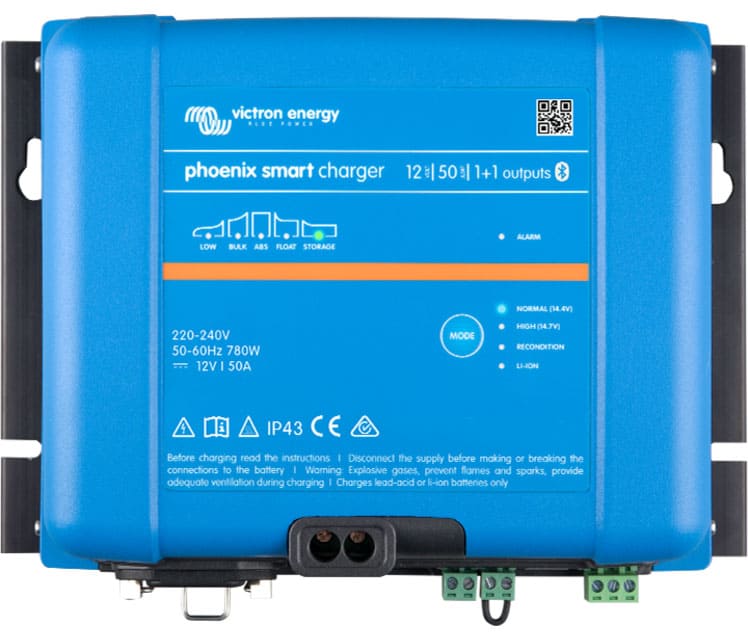 Nuevo cargador de baterías Victron Phoenix Smart IP 43 24/16 con 3 salidas de corriente completa para cargar 3 bancadas de baterías. El cargador Phoenix Smar IP