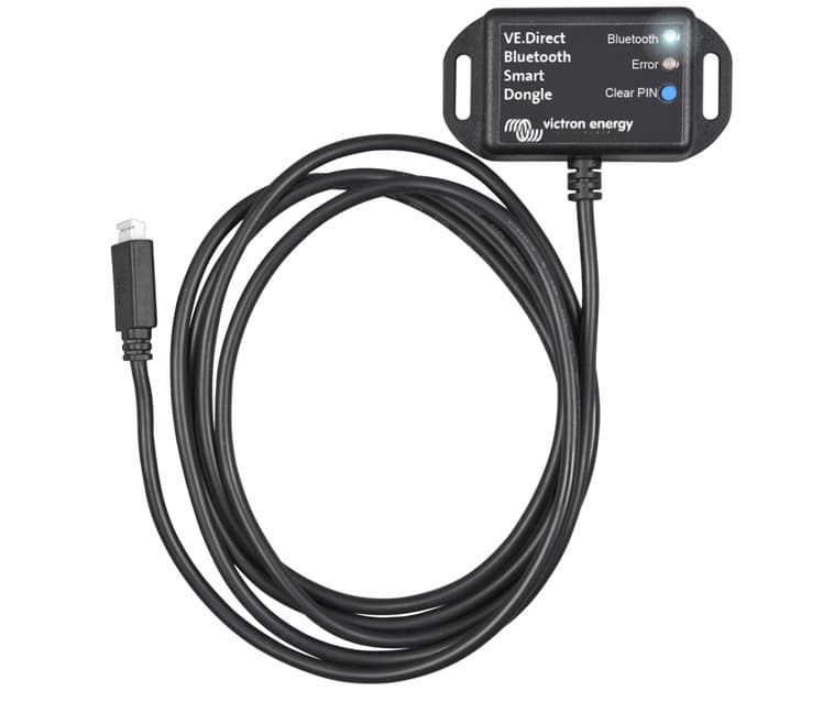 La nueva interface de Victron Energy, permite comunicarse fácilmente mediante un dispositivo iOS o Android a las monitorizaciones VICTRON BMV y a reguladores MPPT a través la aplicación VictronConnect. Se puede consultar información de forma inalámbrica tal como el estado de la batería, carga del panel solar y otros datos útiles.Este accesorio es capaz de leer los datos de los monitores de batería de la serie BMV-70x y reguladores MPPT (a excepción de la 150/70 y 150/85 ) usando el puerto de comunicación VE.Direct.El dongle Bluetooth Victron VE.Direct utiliza Bluetooth Low Enery.
