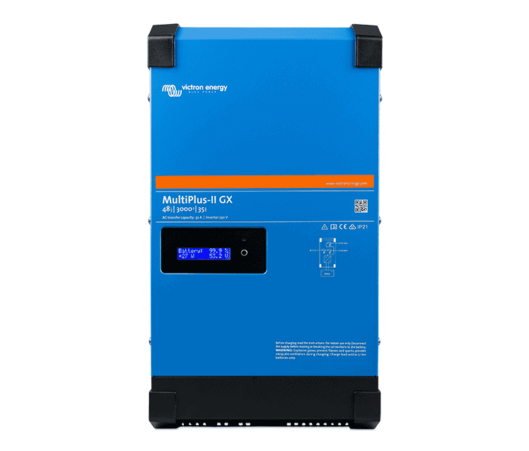 Un inversor/cargador con dispositivo de red integrado, el MultiPlus-II GX se comunica con cargadores solares, baterías y otros dispositivos para controlar una i