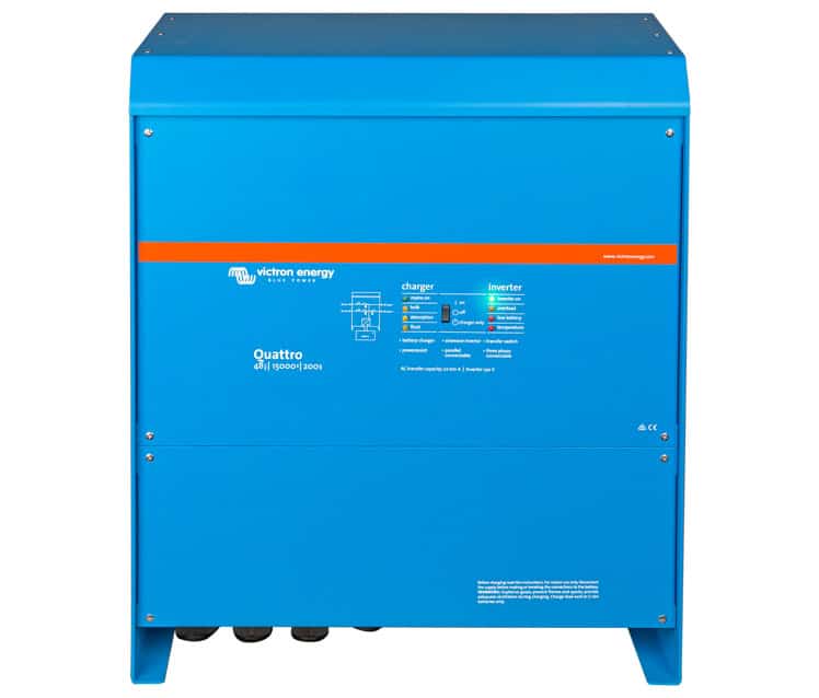El inversor cargador Quatro de Victron de 48v y 15000 VA de potencia puede conectarse a dos fuentes de alimentación CA independientes. Entre sus muchas caracter