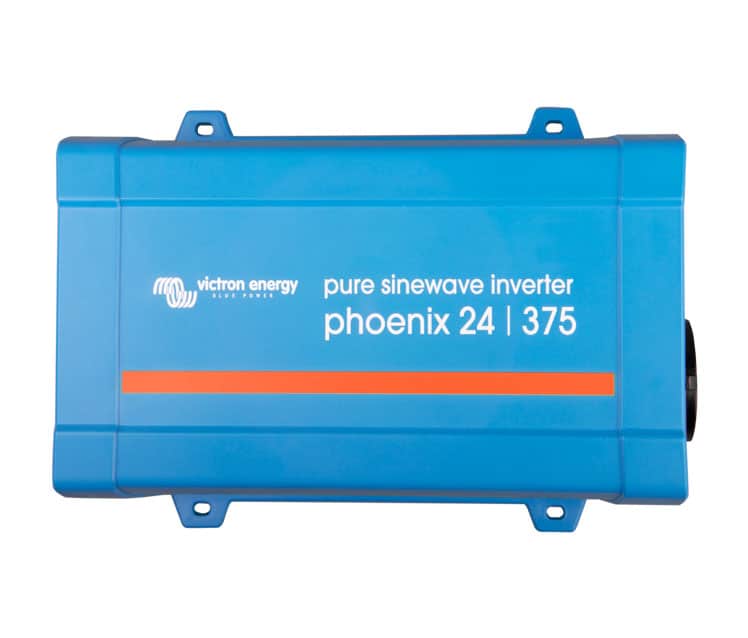 Inversor Victron 24V 375W de potencia continua y 750W de potencia pico de la gama Phoenix. Convierte la corriente de tu instalación de 24V a corriente continua 220V. Ideal para sistemas fotovoltáicos de autoconsumo, caravanas y embarcaciones.