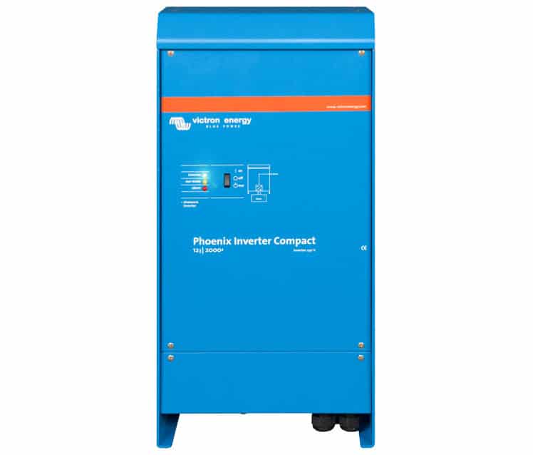 Inversor Victron 12V 2000W de potencia continua y 4000W de potencia pico de la gama Phoenix Compact. Convierte la corriente de tu instalación de 12V a corriente continua 220V. Ideal para sistemas fotovoltáicos de autoconsumo, caravanas y embarcaciones.