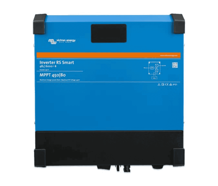 El inversor de alta frecuencia Victron RS 48/6000 230V Smart es un inversor para aislada silencioso, con muy bajo consumo en reposo y una eficiencia excelente.D
