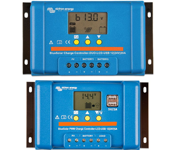 Regulador de carga VICTRON BlueSolar PWM DUO LCD&USB 20A con selector automático de voltaje 12/24V y controlador PWM. Capacidad para carga de dos baterías disti
