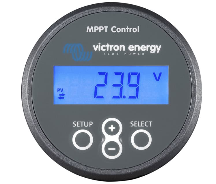 El nuevo MPPT Control está montado en la carcasa familiar de la serie BMV-700, manteniendo un aspecto consistente y profesional para sus paneles y equipos de monitorización de sistemas.Características técnicasInformación al momento de:Vatios solaresVoltaje de la bateríaCorriente de cargaVer información histórica Avalores de todos los tiempos BValores históricos de 30 díasConfiguración de MPPTTensión de alimentación 6,5 – 95VCC (alimentado por batería) 5V (alimentado por VE.Direct)Consumo eléctrico; luz trasera apagada < 4mARango de temperatura de trabajo -20 - +50°C (0 - 120°F)MPPT compatiblesTodos los modelos con puerto VE.Direct, excepto el MPPT 70/15Versión de software Todas las versiones de software >= 1.12