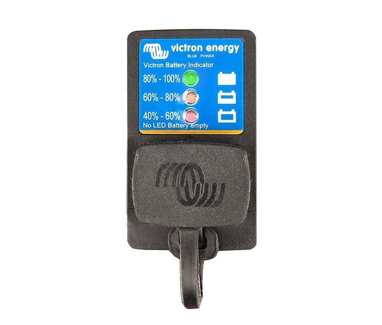 El panel indicador de la batería muestra el estado de carga de la batería. Es un accesorio para los cargadores Blue Smart IP65 y los cargadores Blue Power IP65.