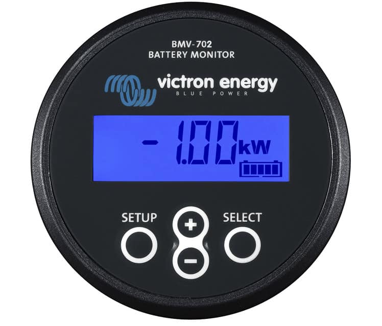 Esta es una versión en negro del siempre popular medidor de horas de amperios BMV 702, realiza un seguimiento de la corriente que entra y sale de un banco de baterías y utiliza un algoritmo sofisticado para leer el estado de carga de la batería en porcentaje restante y amperios hora restante. . También muestra voltios y amperios, tiempo restante y energía consumida y realiza un seguimiento de los datos históricos, incluida la eficiencia de la batería, la descarga promedio, la descarga más profunda, el número de ciclos, la sobretensión y las alarmas de subtensión.