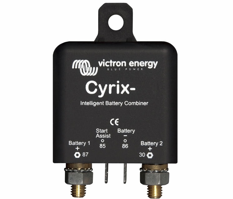 El transmisor de batería Cyrix es un relé para aplicaciones pesados controlado por un microprocesador que conecta automáticamente las baterías en paralelo cuando uno de ellos alcanza la tensión predefinida (a indicar que la batería es de carga) y se desconecta cuando la tensión cae por debajo del nivel de mantenimiento (p. indicar que una o varias baterías son en agotamiento).
