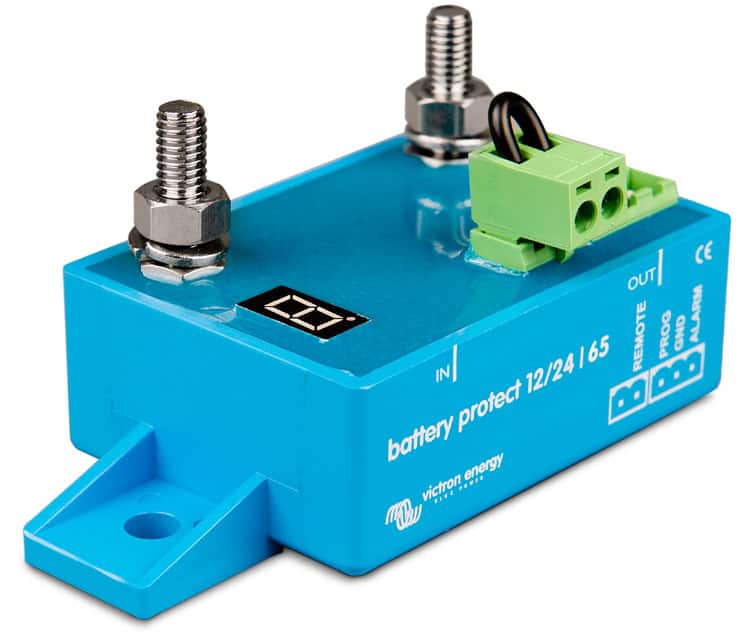 Dos salidas CA La salida principal dispone de la función “no-break” (sin interrupción). El MultiPlus se encarga del suministro a las cargas conectadas en caso de apagón o de desconexión de la red eléctrica/generador. Esto ocurre tan rápidamente (menos de 20 milisegundos) que los ordenadores y demás equipos electrónicos continúan funcionando sin interrupción. La segunda salida sólo está activa cuando una de las entradas del MultiPlus tiene alimentación CA. A esta salida se pueden conectar aparatos que no deberían descargar la batería, como un calentador de agua, por ejemplo (segunda salida disponible en modelos con una capacidad nominal de 3kVA o más). Potencia prácticamente ilimitada gracias al funcionamiento en paralelo Hasta 6 Multis pueden funcionar en paralelo para alcanzar una mayor potencia de salida. Seis unidades 24/5000/120, por ejemplo, darán una potencia de salida de 25 kW/30 kVA y una capacidad de carga de 720 amperios. Capacidad de funcionamiento trifásico Además de la conexión en paralelo, se pueden tres unidades del mismo modelo para una salida trifásica. Pero eso no es todo: se pueden conectar en paralelo hasta 6 juegos de tres unidades que proporcionarán una potencia de salida de 75 kW / 90 kVA y más de 2000 amperios de capacidad de carga. PowerControl – Potencia limitada del generador, de la toma de puerto o de la red El MultiPlus es un cargador de baterías muy potente. Por lo tanto, usará mucha corriente del generador o de la red del pantalán (casi 10 A por cada Multi de 5kVA a 230 VCA). En el Panel Multi Control puede establecerse una corriente máxima proveniente del generador o del pantalán. El MultiPlus tendrá se hará cargo de otras cargas CA y utilizará la corriente sobrante para la carga, evitando así sobrecargar el generador o la toma de puerto. PowerAssist – Aumento de la capacidad eléctrica de la toma de puerto o del generador Esta función lleva el principio de PowerControl a otra dimensión. Permite que el MultiPlus complemente la capacidad de la fuente alternativa. Cuando se requiera un pico de potencia durante un corto espacio de tiempo, como pasa a menudo, el MultiPlus compensará inmediatamente la posible falta de potencia de la corriente de la red o del generador con potencia de la batería. Cuando se reduce la carga, la potencia sobrante se utiliza para recargar la batería. Energía solar: Potencia CA disponible incluso durante un apagón El MultiPlus puede utilizarse en sistemas PV, conectados a la red eléctrica o no, y en otros sistemas eléctricos alternativos. Hay disponible software de detección de falta de suministro. Configuración del sistema – En el caso de una aplicación autónoma, si ha de cambiarse la configuración, se puede hacer en cuestión de minutos mediante un procedimiento de configuración de los conmutadores DIP. – Las aplicaciones en paralelo o trifásicas pueden se con el software VE.Bus Quick Configure y VE.Bus System Configurator. – Las aplicaciones no conectadas a la red, que interactúan con la red y de autoconsumo que impliquen inversores conectados a la red y/o cargadores solares MPPT pueden se con Asistentes (software específico para aplicaciones concretas). Seguimiento y control in situ Hay varias opciones disponibles: Battery Monitor, Multi Control Panel, Color Control GX y otros dispositivos, smartphone o tableta (Bluetooth Smart), portátil u ordenador (USB o RS232). Seguimiento y control a distancia Color Control GX y otros dispositivos. Los datos se pueden almacenar y mostrar gratuitamente en la web VRM (Victron Remote Management). Configuración a distancia Saber más… La función BatteryProtect desconecta las cargas no esenciales de la batería antes de que se descargue completamente (lo que dañaría la batería) o antes de que se quede sin la carga suficiente como para arrancar el motor.El Battery Protect es un dispositivo unidireccional. Solo puede trabajar con la corriente en una dirección: o bien la corriente que va hacia una carga, o bien la corriente que procede de un cargador, pero no las dos al mismo tiempo. Además, la corriente solo puede fluir del terminal de Batería al terminal de Carga. En caso de que se use con una carga, se conecta la batería al terminal de Batería, y en caso de que se use con un cargador, se conecta el cargador al terminal de Batería.El BatteryProtect detecta automáticamente la tensión del sistema Programación fácil. El BatteryProtect se puede ajustar para conectarse/desconectarse a varias tensiones diferentes. la pantalla de siete segmentos indicará qué ajuste se ha escogido. Una configuración especial para las baterías Li-Ion. En este modo, el BatteryProtect puede controlarse mediante el BMS del VE.Bus. Consumo de corriente ultra bajo. Esto es importante en el caso de las baterías Li-Ion, especialmente después de una desconexión por baja tensión. Protección de sobretensión. para evitar que en aparatos delicados se produzcan daños por sobretensión, la carga se desconecta siempre que la tensión CC supera 16 V o 32 V. A prueba de incendios. Sin relés pero con conmutadores MOSFET, por tanto, sin chispas. Salida de alarma retardada. la salida de alarma se activa si la tensión de la batería cae por debajo del nivel de desconexión preconfigurado durante más de 12 segundos. por tanto, al arrancar el motor no se activarála alarma. Normalmente, la salida de alarma se utiliza para activar una señal acústica, un LED o un relé. Desconexión de carga retardada y reconexión retardada. la carga se desconectará 90 segundos después de que la alarma se haya activado. Si la tensión de la batería se incrementa de nuevo hacia el umbral de conexión en este periodo de tiempo (después de que, por ejemplo, el motor se haya arrancado), la carga no se desconectará. La carga se volverá a reconectar 30 segundos después de que la tensión de la batería haya superado la tensión de reconexión preestablecida.