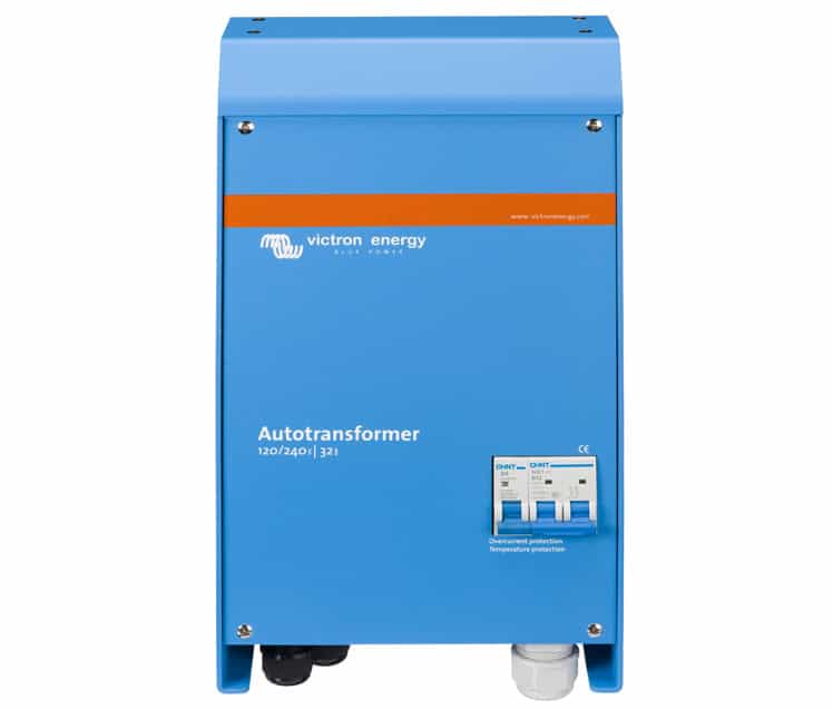 El autotransformador: para aumentar, reducir y equilibrar la fase divididaUn autotransformador puede utilizarse para aumentar, reducir y equilibrar la salida de fase dividida. Mientras que las funciones de subida y bajada son bastante sencillas, el equilibrado de la salida de fase dividida puede requerir algo más de atención.Consideremos, por ejemplo, una alimentación de fase dividida de 30 A 120/240 V. El suministro puede ser la red, un generador o dos inversores apiladosAlgunas de las cargas conectadas son de 240 V y otras de 120 V. En cada tramo de 120V la carga no debería superar los 30A. El problema es que en cuanto se conectan las cargas de 120V, las dos patas muestran una corriente diferente. Esto se debe a que las cargas de 120V en las dos patas nunca estarán equilibradas. Un secador de pelo de 120V y 1200W, por ejemplo, consumirá 10A de una pata. Una lavadora de 120 V podría incluso consumir más de 20 A de una pata. Por lo tanto, la diferencia de corriente entre los dos tramos, o el desequilibrio de corriente, será a menudo de 20 A o más. Esto significa que el suministro de 30A no se utilizará en todo su potencial. En el momento en que un tramo consume 30A, el otro tramo puede estar consumiendo no más de 10A, y el aumento de la carga de 240V, por ejemplo, dará lugar a una sobrecarga de un tramo mientras el otro todavía tiene capacidad de sobra.Teóricamente, la potencia total que se puede extraer de una alimentación de 30A 120/240V es de 30 x 240 = 7,2 kVA. En caso de desequilibrio de 20A, el máximo práctico será de 30 x 120 + 10 x120 = 4,8kVA, es decir, el 67% del máximo teórico. La solución es un autotransformadorDejando el neutro de la alimentación de fase dividida sin utilizar, y conectando un autotransformador para crear un nuevo neutro, como se muestra en la figura 1, cualquier desequilibrio de la carga es “absorbido” por el autotransformador. En el caso de un suministro de 30A, la carga puede aumentar a 7,2kVA, y un desequilibrio de carga de 20A hará que una pata suministre 40A y la otra 20A. La diferencia de 20A fluirá a través del neutro y los devanados del autotransformador. La corriente a través de ambos cables de 120V del suministro de fase dividida será de 30A.