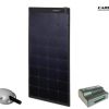 Set con panel solar Carbest 100W/115W. Por ejemplo, para luz, bomba de agua, calefacción ocasional. Set completo Power Panel Flex 160 blanco o negro