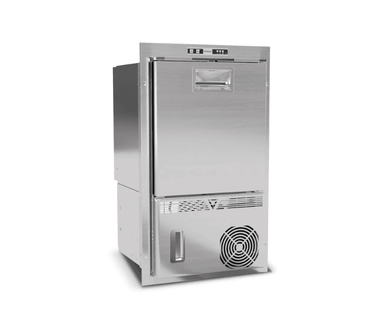 IM-CL OCX2 HY DX 230V 50/60HZ TD *INT* es un fabricador de hielo de alta calidad de acero inoxidable diseñado para producir 8 Kg de hielo en 24 horas, especialmente diseñado para las necesidades en la navegación.Este fabricador de hielo cuenta con un diseño compacto y eficiente, gracias a su termostato integrado(INT) en la parte inferior. Esta colocación inteligente permite un perfil más estrecho, ideal para espacios reducidos, sin comprometer el rendimiento. El nuevo sistema de cierre avanzado Steelock evita que el dispositivo se abra accidentalmente, incluso en las condiciones más complicadas. Además, el sistema Vent Position evita la formación de moho y olores desagradables durante los períodos de inactividad. El IM-CL OCX2 HY DX 230V 50/60HZ TD *INT* está diseñado para conectarse directamente a la toma de agua de la embarcación, eliminando la necesidad de una bandeja separada. También puedes optar por un sistema UV opcional para la purificación del agua, garantizando la máxima higiene.